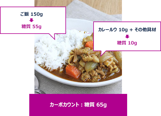 このレシピでは、糖質はご飯とルウに主に含まれているよ!